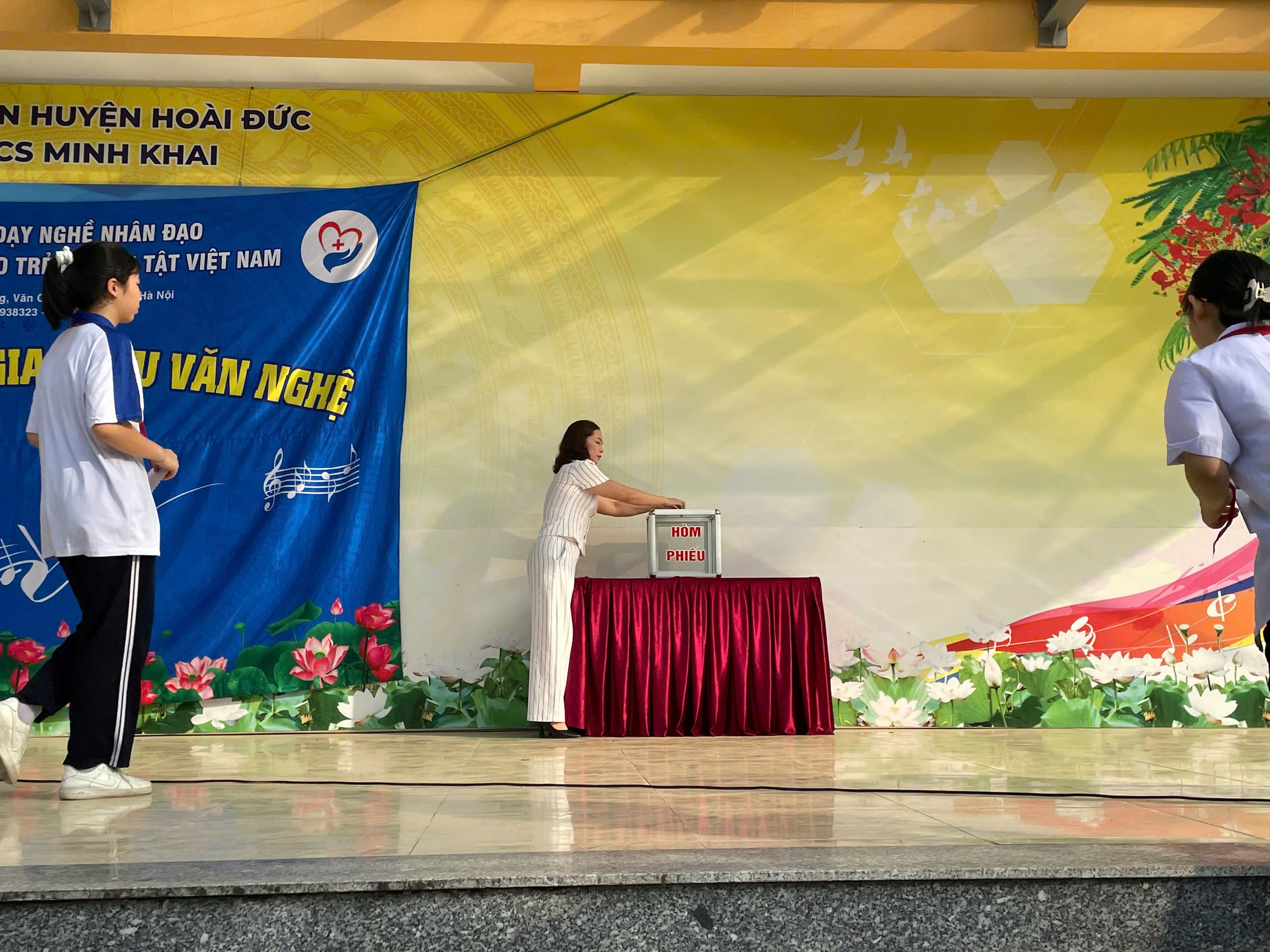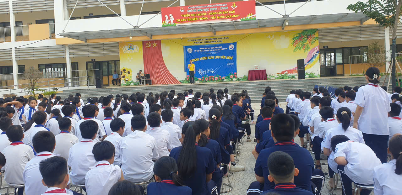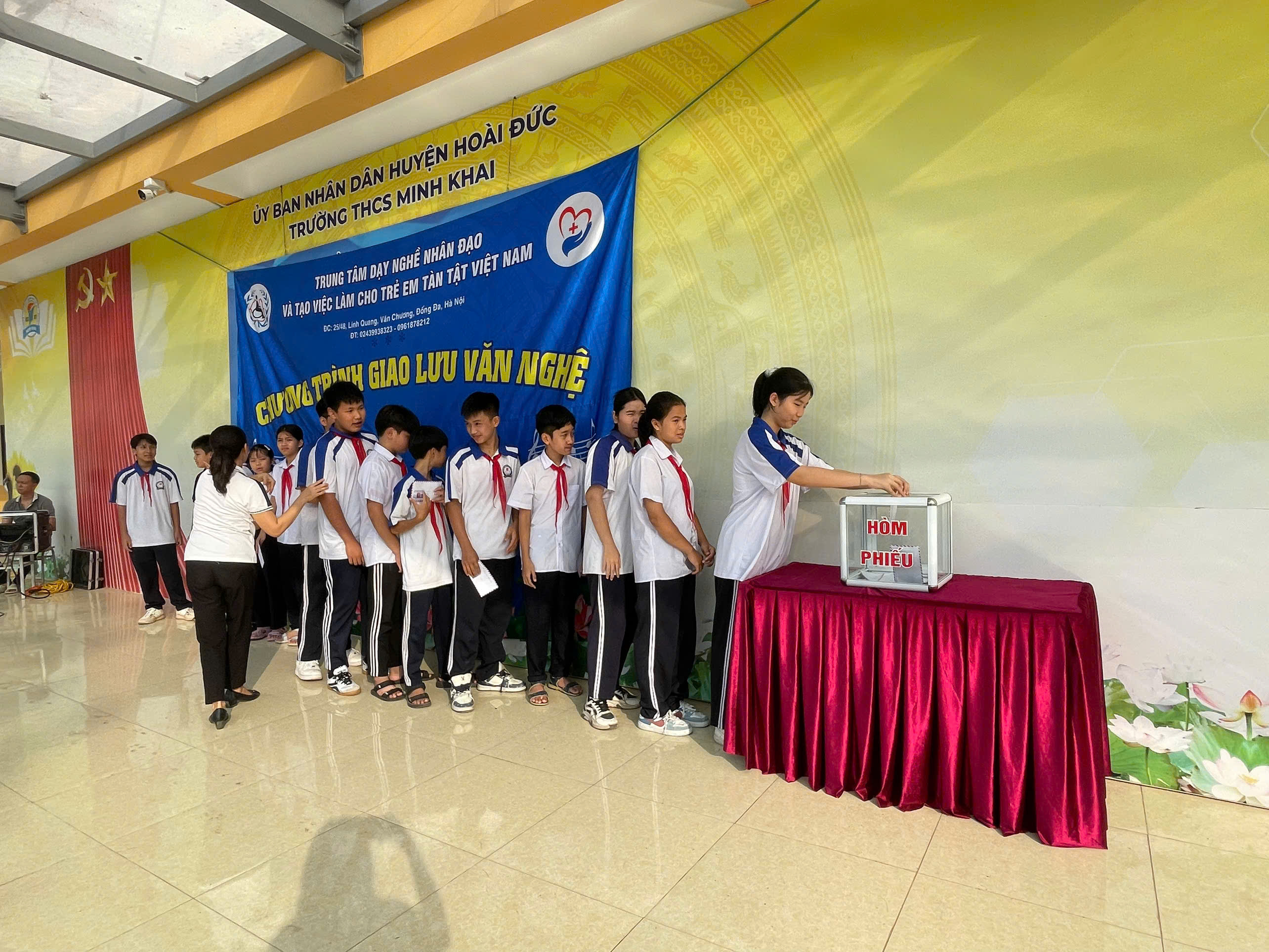 - Nhằm giáo dục lòng nhân ái và giúp đỡ người có hoàn cảnh khó khăn không may mắn, ngày 15/10/2024. Trường THCS Minh Khai đón đoàn trung tâm dạy nghề và tạo việc làm cho trẻ em tàn tật Việt Nam về giao lưu văn nghệ.