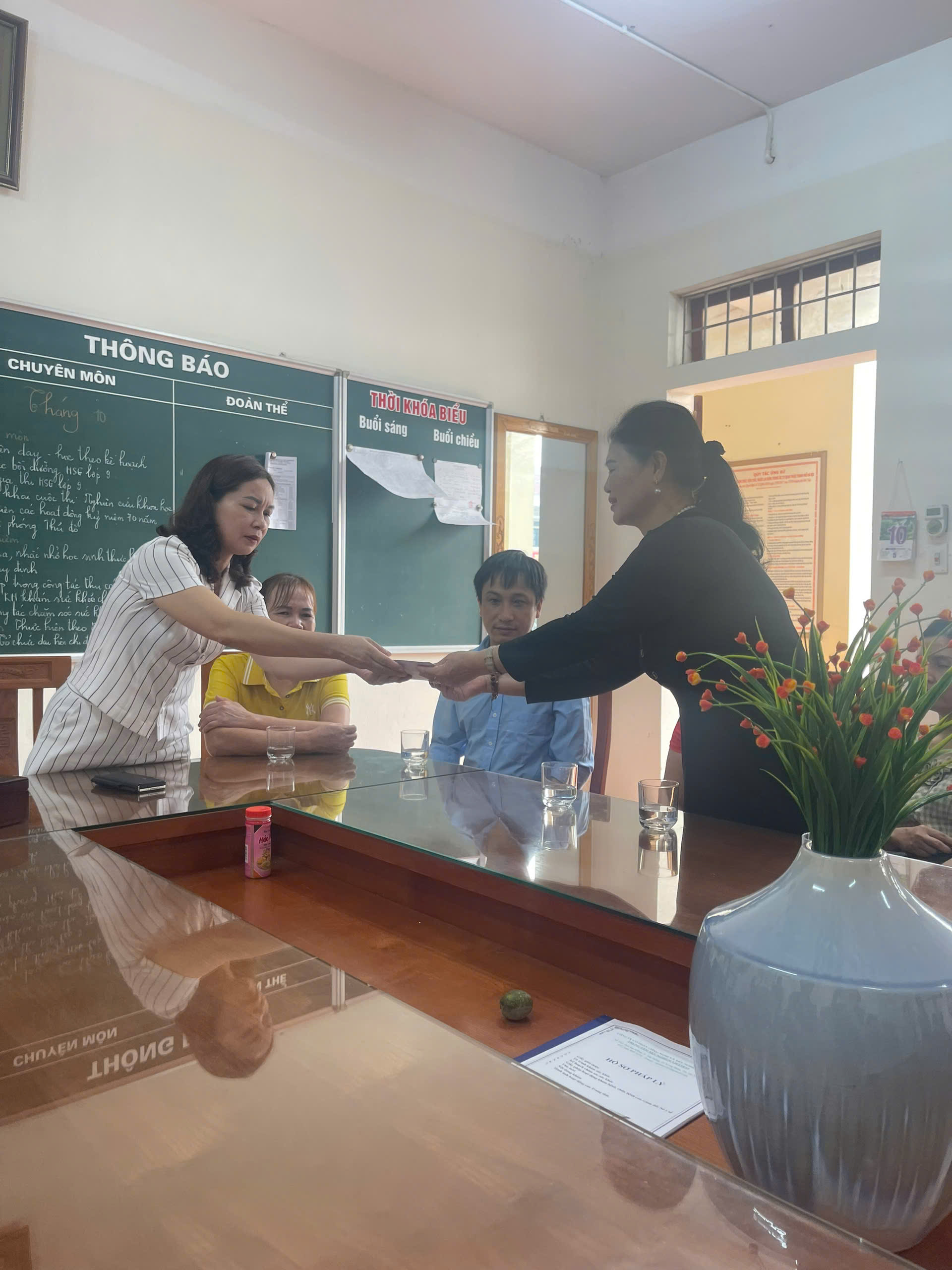 - Nhắm thể hiện tinh thần" Tương thân tương ái" "Lá lành đùn lá rách" Tập thể GV và HS cũng đã gây quỹ hỗ trợ cho đoàn với số tiền 5.250.000 nhằm chung tay góp phần nhỏ, cũng như thể hiện tấm lòng của tập thể trường.